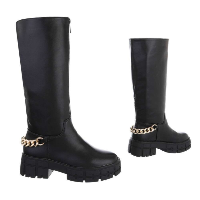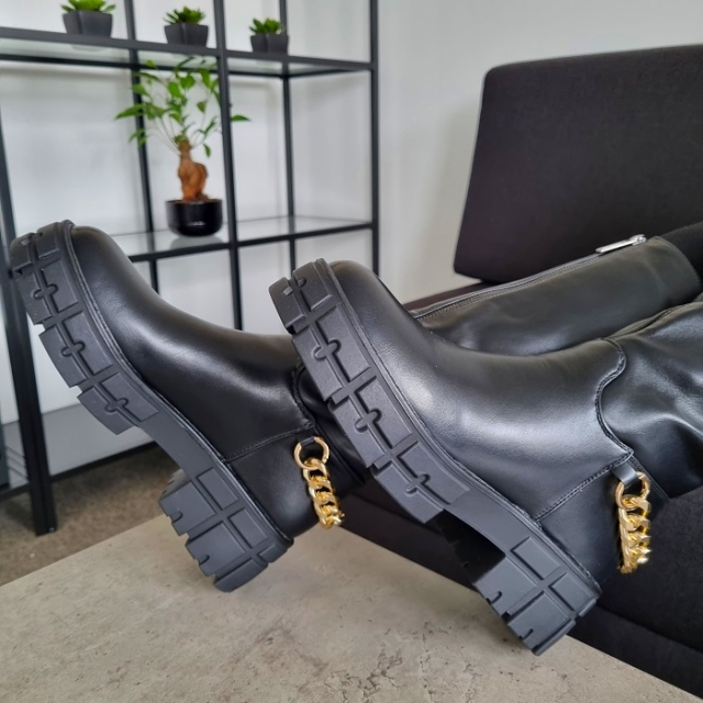 Črni škornji z debelejšim podplatom in dekorativno verigo: 36, 37, 38