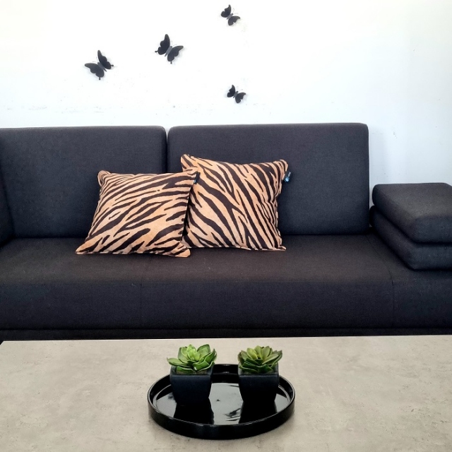 Blazine so na eni strani s tigrastim vzorcem, na drugi strani pa so v rjavo-črni mehki tkanini.