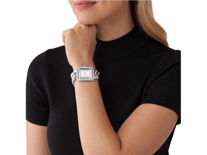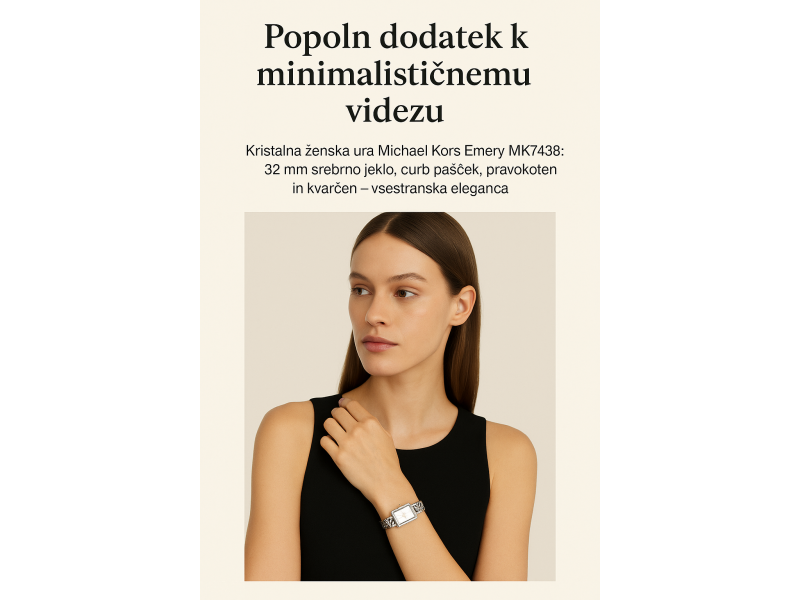 Če prisegate na preprostost, čiste linije in nevpadljive, a opazne modne dodatke, potem bo ura Michael Kors Emery MK7438 hitro postala vaš najljubši kos. S svojim elegantnim pravokotnim ohišjem iz sijočega srebrnega jekla in drobnimi kristalnimi poudarki je kot ustvarjena za ženske, ki želijo s subtilnostjo povedati veliko.
