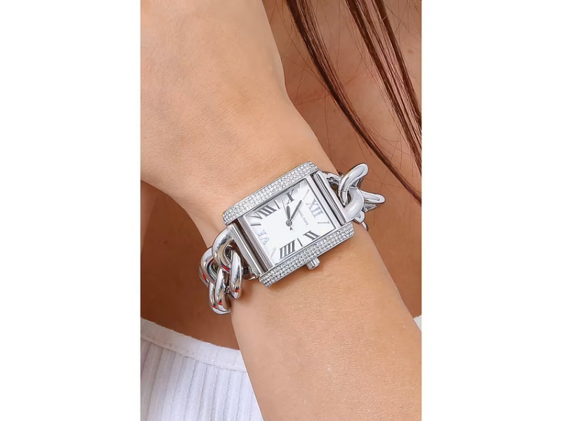 Zasnovana z mislijo na vsakdanjo vsestranskost, a dovolj posebna, da izstopa – Emery MK7438 se popolno poda k minimalističnim oblačilom v nevtralnih tonih, črnim oblekam, belim srajcam ali enostavnim blazerjem. Poseben čar doda tudi kovinski curb-link pašček, ki deluje kot ura in nakit hkrati.