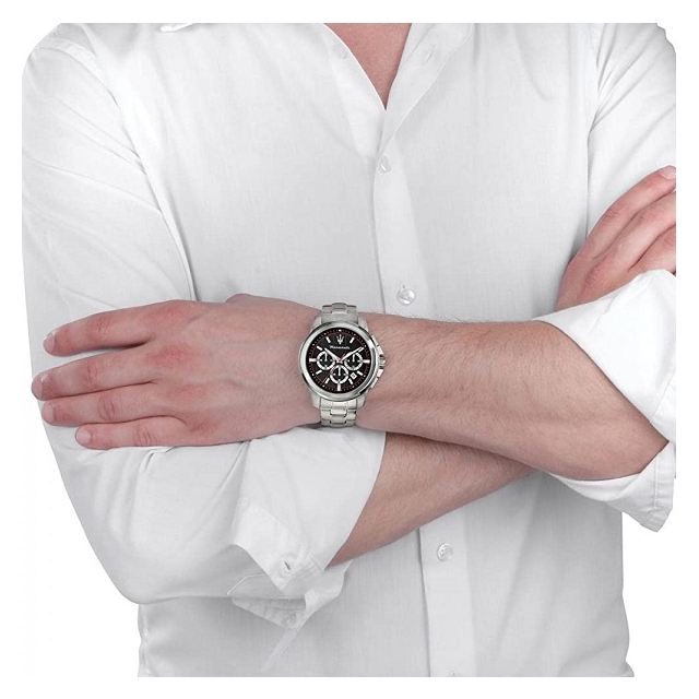 Ta ura ima črno številčnico, ki je v kombinaciji s srebrno barvo. Na vrhu številčnice je logotip blagovne znamke Maserati in Maserati napis. Vse skupaj se odlično poveže z elegantnim paskom, ki je srebrne barve in prikazovalnikom datuma.