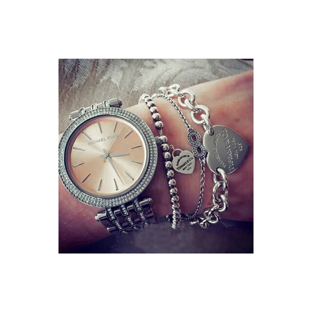 Ovaj sat ima prekrasnu brojčanu ploču koja dolazi u kombinaciji sa srebrnim kućištem. Na vrhu brojčane ploče nalazi se logo marke Michael Kors . Sve to lijepo nadopunjuju kristali koji su raspoređeni i po narukvici.