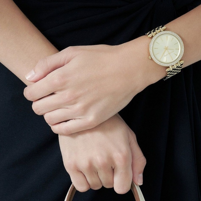 Očarljiva ženska ura blagovne znamke MICHAEL KORS je prava paša za oči! Njena čudovita in elegantna zlata barva se izjemno lepo poda vsakemu stilu. Natančno izdelana ura, ki nežno objame vaše zapestje in izžareva brezčasno eleganco. Je popoln dodatek tako k elegantnim opravam kot tudi bolj sproščenemu jeansu in casual oblačilom. Bodite navdih drugim s svojim izvrstnim okusom in stilom, ki ga ure Michael Kors simbolizirajo.