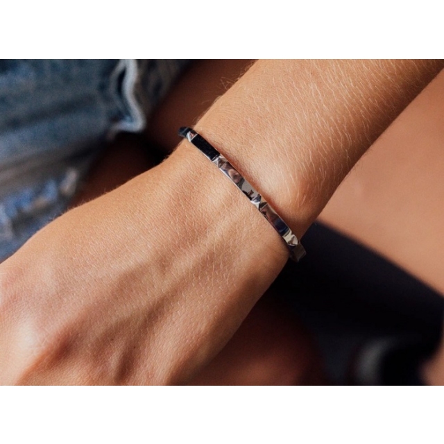 Ta zapestnica je posebna zaradi minimalistične oblike, in srebrne barve.
