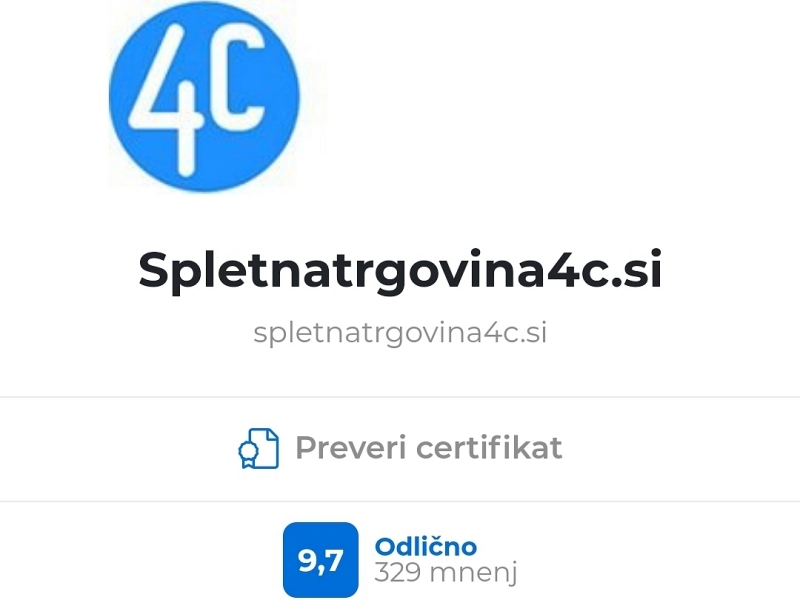 Spletna trgovina 4C.si je med 5.000 sodelujočimi spletnimi trgovinami iz 3 držav zasegla odlično 1. mesto. Ocenjena je bila z 9.7 od možnih 10 točk in tako prehitela vse svoje konkurente.